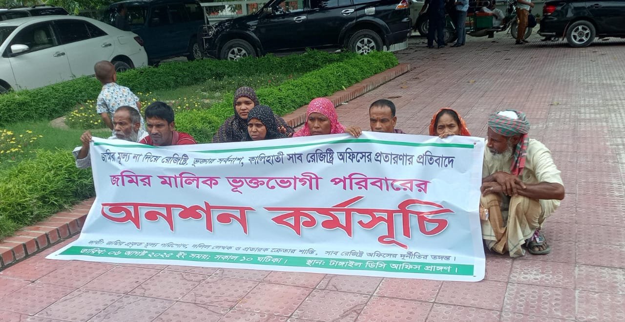 টাঙ্গাইলে জমি রেজিস্ট্রিতে জালিয়াতির অভিযোগে অনশন, তিন দফা দাবি ভুক্তভোগীদের